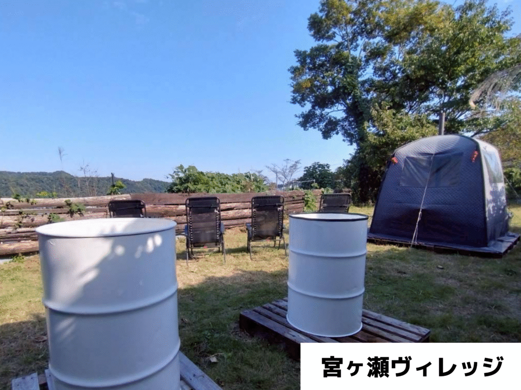 見晴らしの良い高台に佇むキャンプエリアで、テントサウナをお楽しみいただけます。電源・シャワー・トイレ・Wi-Fi・水場などを完備しており、施設内カフェ「UNITEDcafe宮ヶ瀬店」にてお食事も楽しめます!